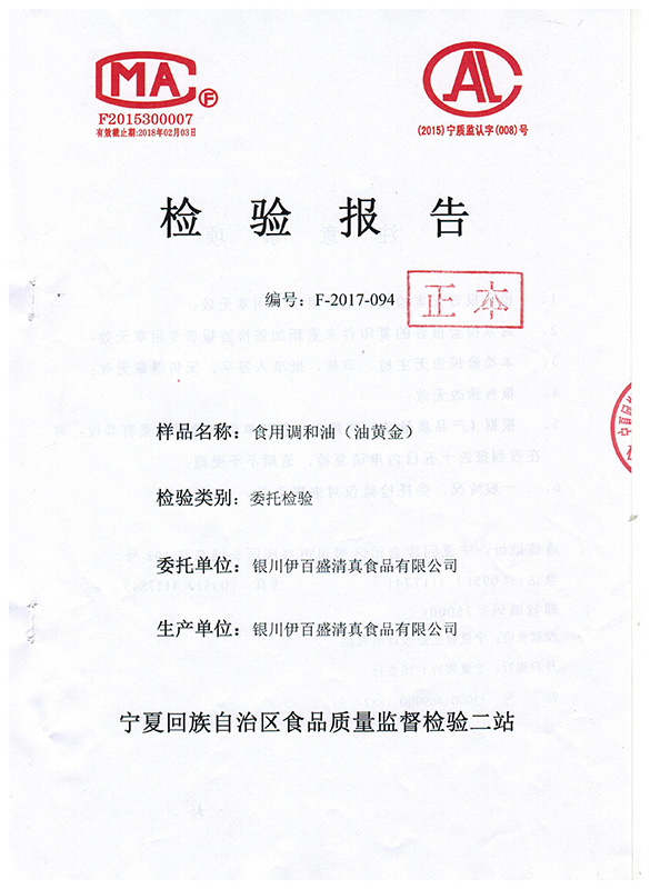 食用調和油(油黃金)檢驗報告