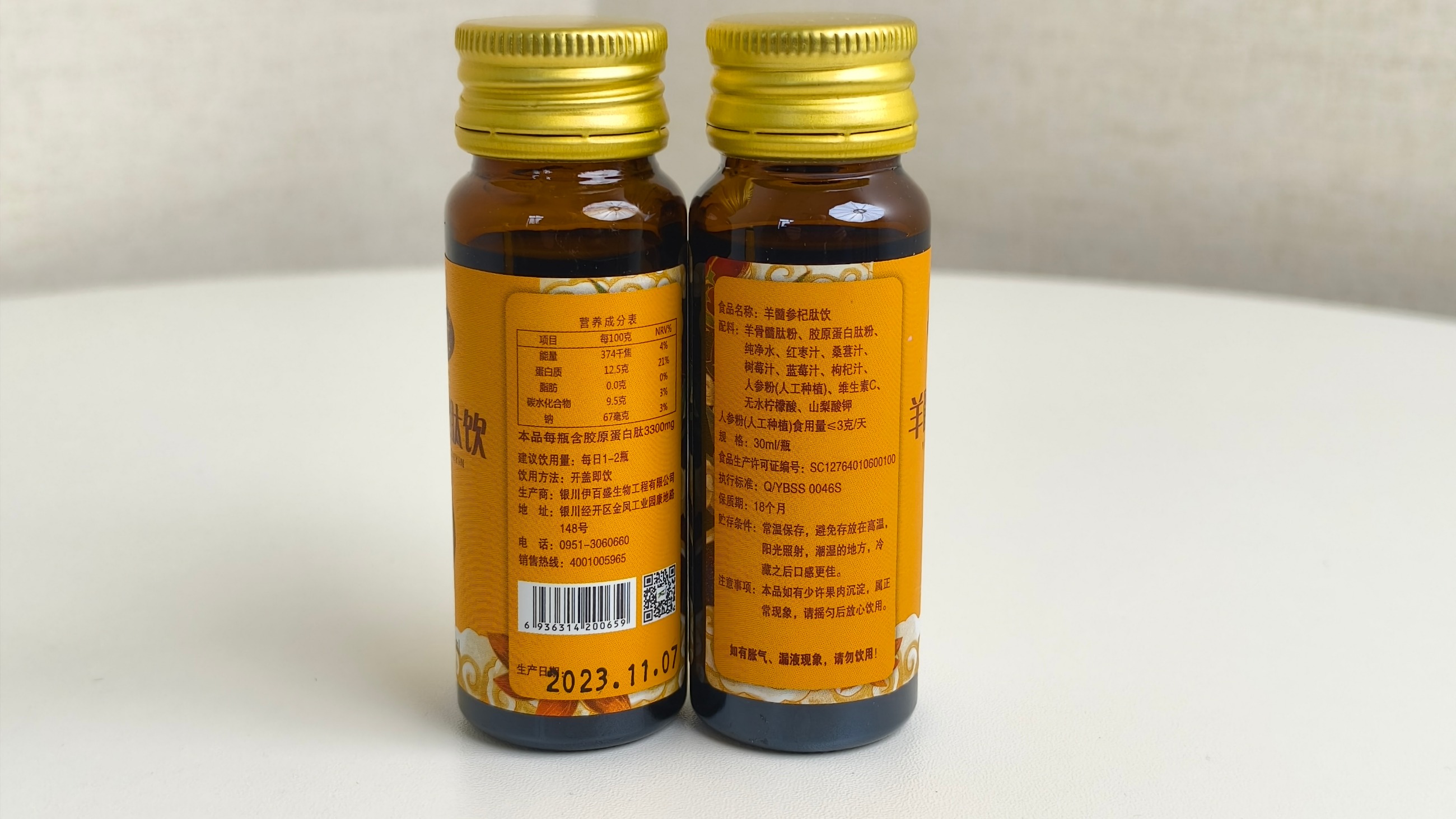 食品名稱:羊髓參杞肽飲