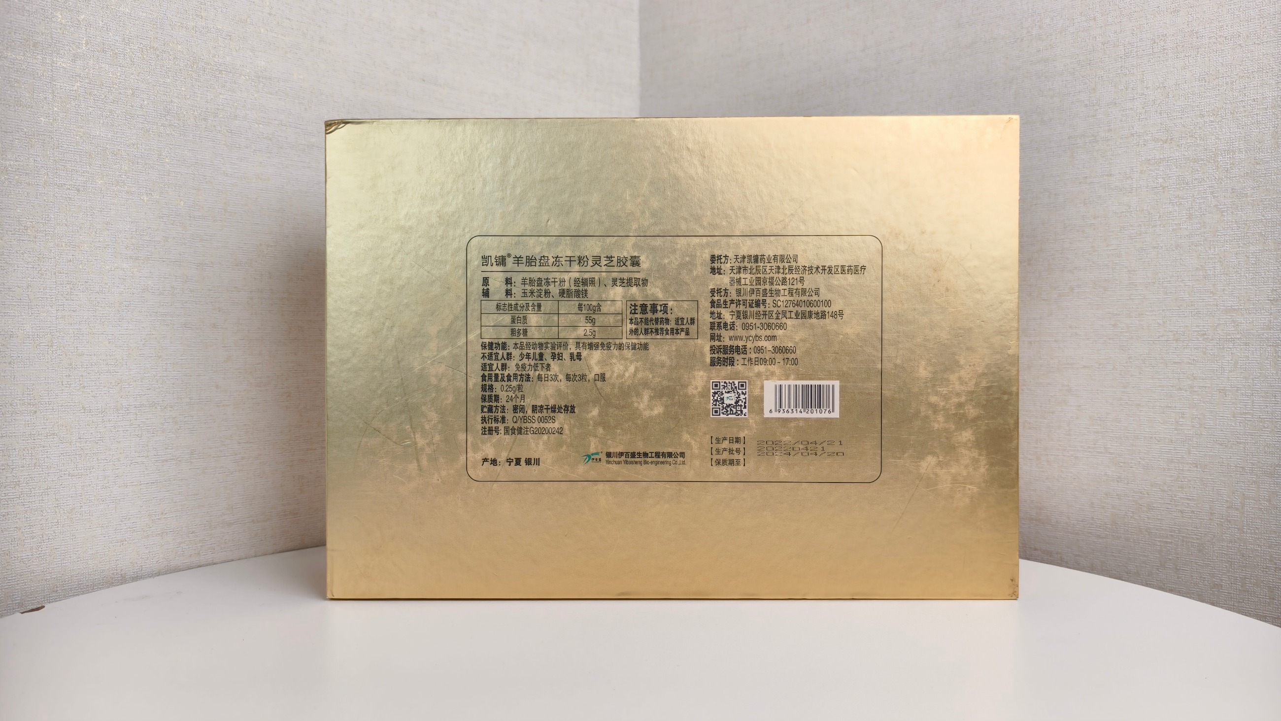 【原料】羊胎盤凍干粉(經(jīng)輻照)、靈芝提取物