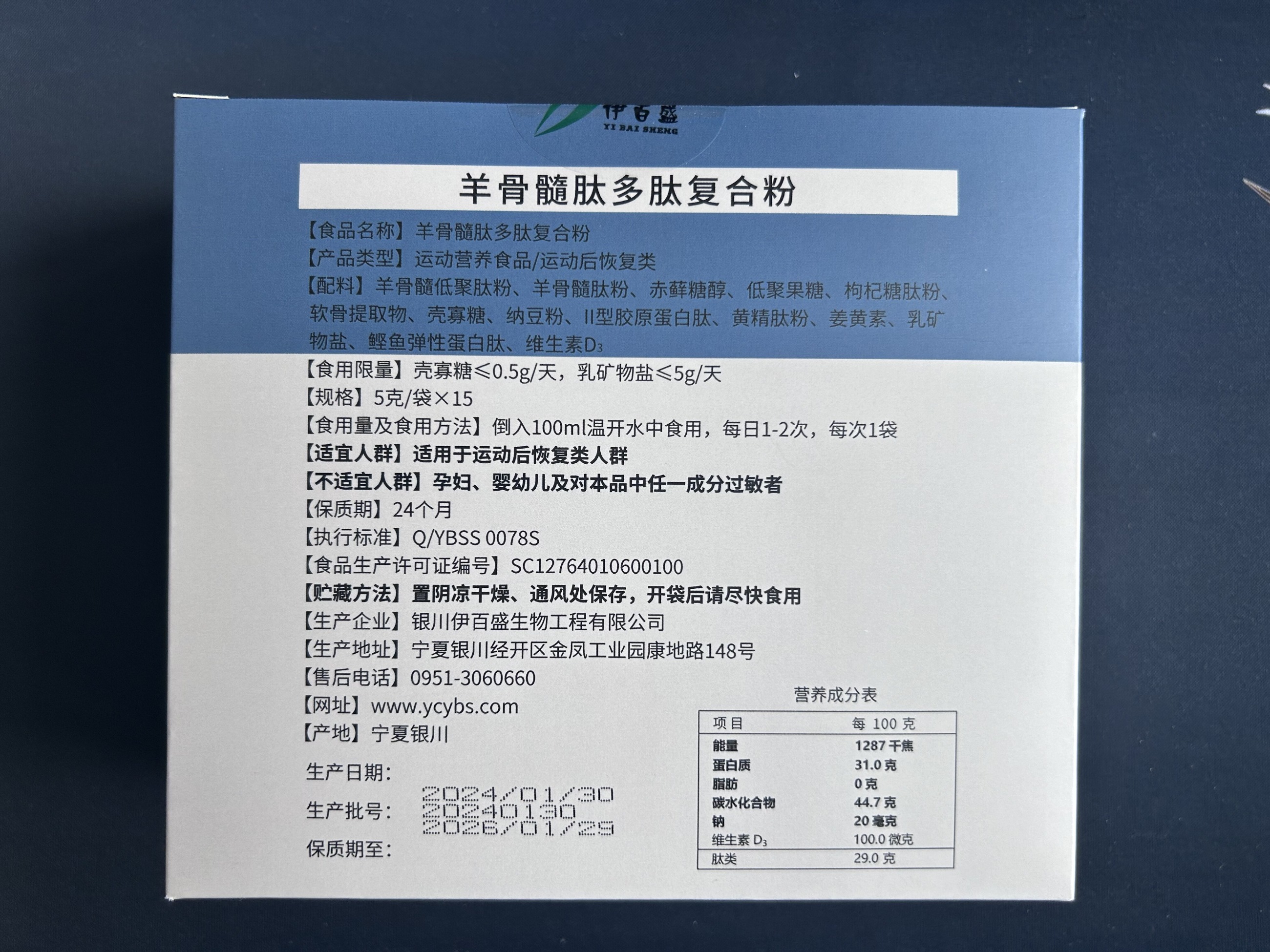 【配料】羊骨髓低聚肽粉、羊骨髓肽粉、赤蘚糖醇、低聚果糖、枸杞糖肽粉,軟骨提取物、殼寡糖、納豆粉、I型膠原蛋白肽、黃精肽粉、姜黃素、乳礦物鹽、鰹魚彈性蛋白肽、維生素D3