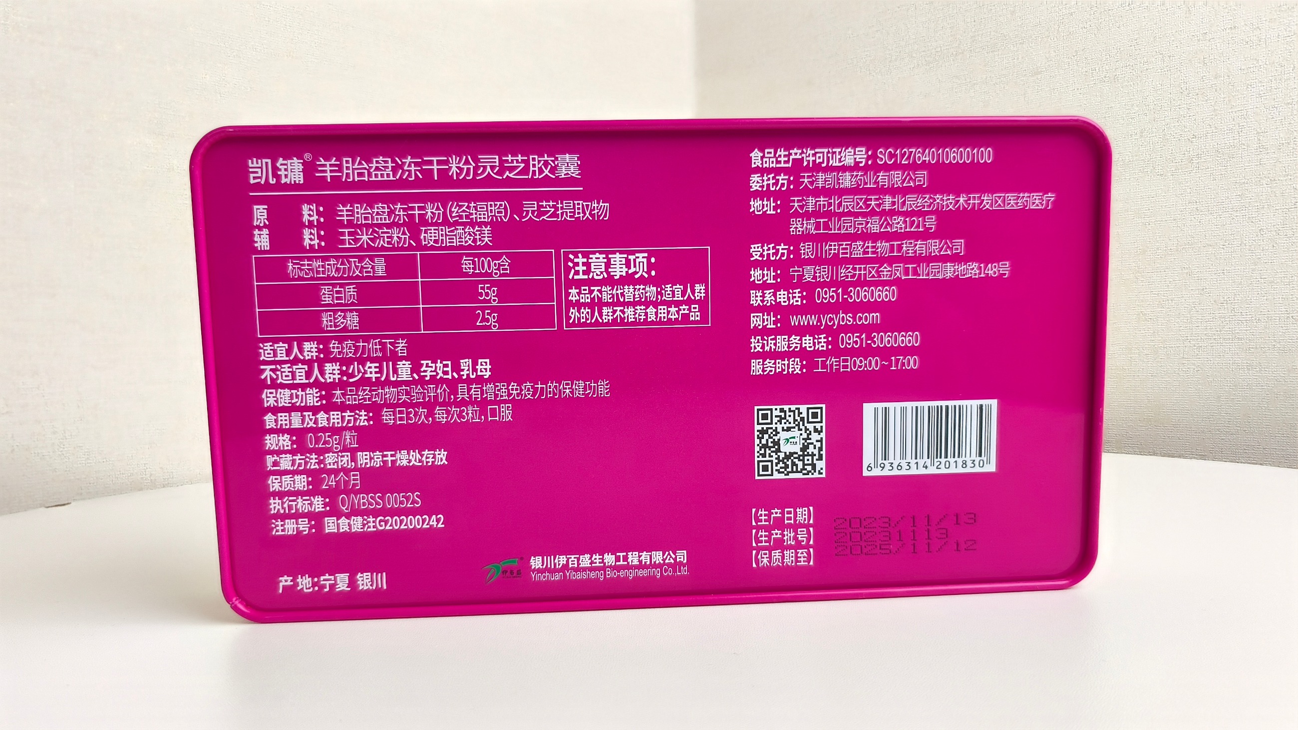 【原料】羊胎盤凍干粉(經輻照)、靈芝提取物