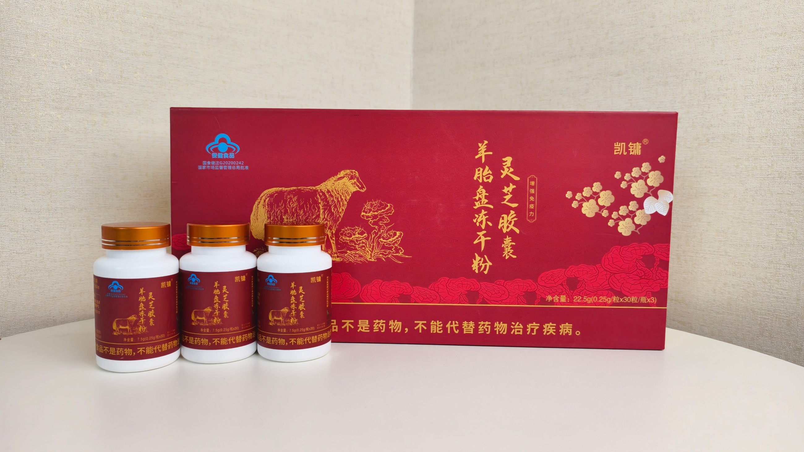 羊胎盤凍干粉靈芝膠囊【原料】羊胎盤凍干粉(經輻照)、靈芝提取物【輔料】玉米淀粉、硬脂酸鎂【標志性成分及含量】每100g含:蛋白質55g、粗多糖2.5g【適宜人群】免疫力低下者【不適宜人群】少年兒童、孕婦、乳母【保健功能】本品經動物實驗評價,具有增強免疫力的保健功能【食用量及食用方法】每日3次,每次3粒,口服【規格】0.25g/粒【貯藏方法】密閉,陰涼干燥處存放【保質期】24個月【執行標準】Q/BS