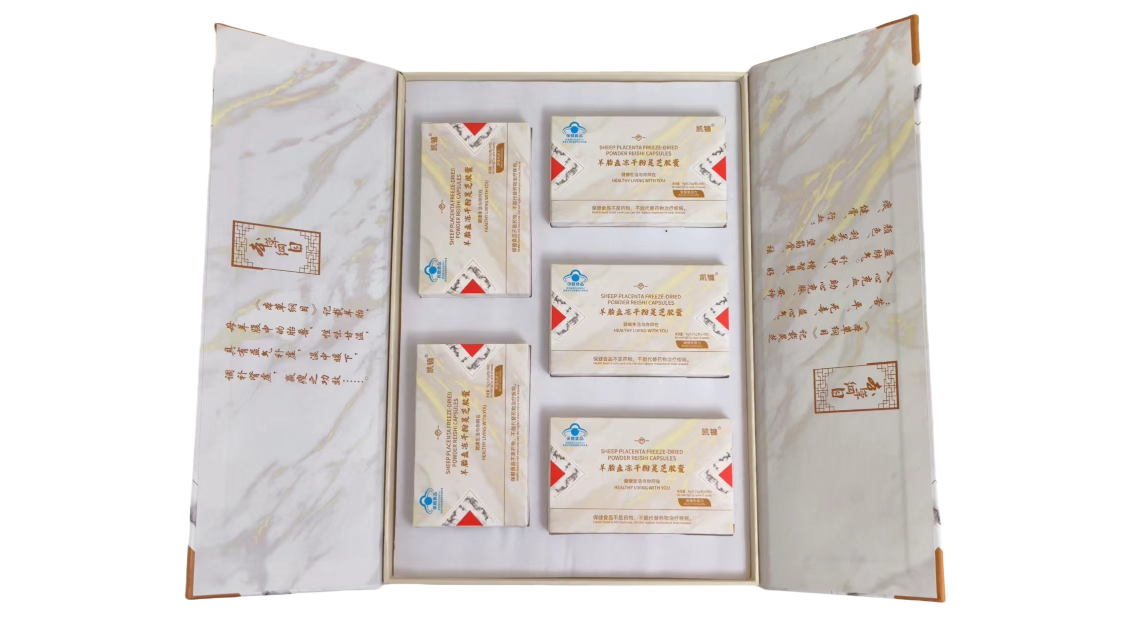 羊胎盤凍干粉靈芝膠囊【原料】羊胎盤凍干粉(經輻照)、靈芝提取物【輔料】玉米淀粉、硬脂酸鎂【標志性成分及含量】每100g含:蛋白質55g、粗多糖2.5g【適宜人群】免疫力低下者【不適宜人群】少年兒童、孕婦、乳母【保健功能】本品經動物實驗評價,具有增強免疫力的保健功能【食用量及食用方法】每日3次,每次3粒,口服【規格】0.25g/粒【貯藏方法】密閉,陰涼干燥處存放【保質期】24個月【執行標準】Q/BS